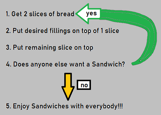 The loop would be making the sandwiches, the condition to stop would be nobody else wants anymore sandwiches.